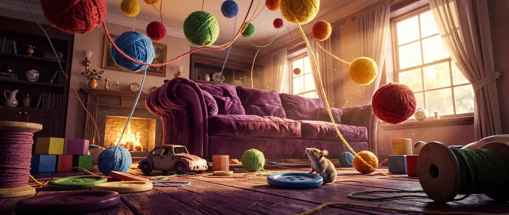 Here, giant knitting needles act as levers and endless spools of vibrant thread power whimsical clockwork contraptions. I ensure every spin and bounce is perfectly woven into a tapestry of pure, risk-free fun.